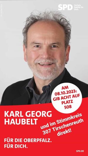 Karl Georg Haubelt kann im Stimmkreis Tirschenreuth direkt und in der ganzen übrigen Oberpfalz auf Platz 508 in den Landtag gewählt werden. Einer von uns!
