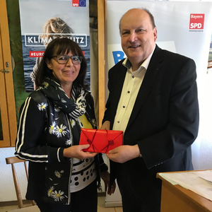 Der scheidende Kreisvorsitzende Rainer Fischer nutze die Kreiskonferenz in Pechbrunn, um sich bei Gisela Birner für die vielen gemeinsamen Jahre hervorragender Zusammenarbeit zu bedanken. Nach 48 Jahren Tätigkeit bei der SPD ist sie Ende März in den wohlverdienten Ruhestand gegangen.