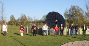 Auch hier musste wegen Corona ein entsprechender Abstand eingehalten werden. Die mindestens 1,5 Meter voneinander entfernten Kreisrätinnen und Kreisräte waren dabei symbolisch durch ein rotes Band verbunden. (BILD, siehe unten)