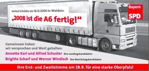 Während einer Veranstaltung der SPD am 18.12.2000 in Weiden hatte es Gerhard Schröder versprochen - heute konnte die Fertigstellung der A6 auch am letzten Teilstück zwischen A93 und Amberg gefeiert werden.