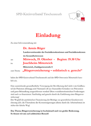 10.10.2016 in Vorankündigung von SPD KV Tirschenreuth